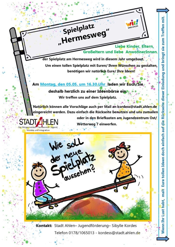 Der Spielplatz Hermesweg in Ahlen ist ein beliebter Ort für Kinder und Familien. Mit einer perfekten Bewertung von 5/5 bietet er eine einladende Atmosphäre für Spiel und Spaß. Aktuell wird der Spielplatz erneuert, was eine großartige Aufwertung für die Kinder der Nachbarschaft darstellt. Die Renovierungsarbeiten versprechen, neue Spielmöglichkeiten und eine verbesserte Umgebung zu schaffen. Der Spielplatz ist ein idealer Treffpunkt für die Kleinen, um sich auszutoben und neue Freundschaften zu schließen.