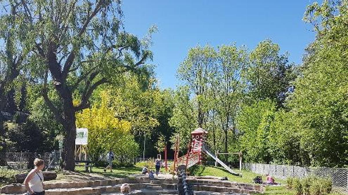 Der Wasserspielplatz in Bad Kissingen ist ein idealer Ort für Familien, besonders an heißen Tagen. Mit einer Bewertung von 4.4/5 bietet er zahlreiche Wasserspiele, Rutschen und schattige Plätze unter Bäumen. Kinder können im großen Wasserbecken planschen, Staudämme bauen und auf dem Kletterturm mit Rutsche spielen. Der Spielplatz ist sauber und gut gestaltet, jedoch fehlen ausreichend Sitzgelegenheiten und sanitäre Anlagen, was für Familien mit kleinen Kindern problematisch sein kann.