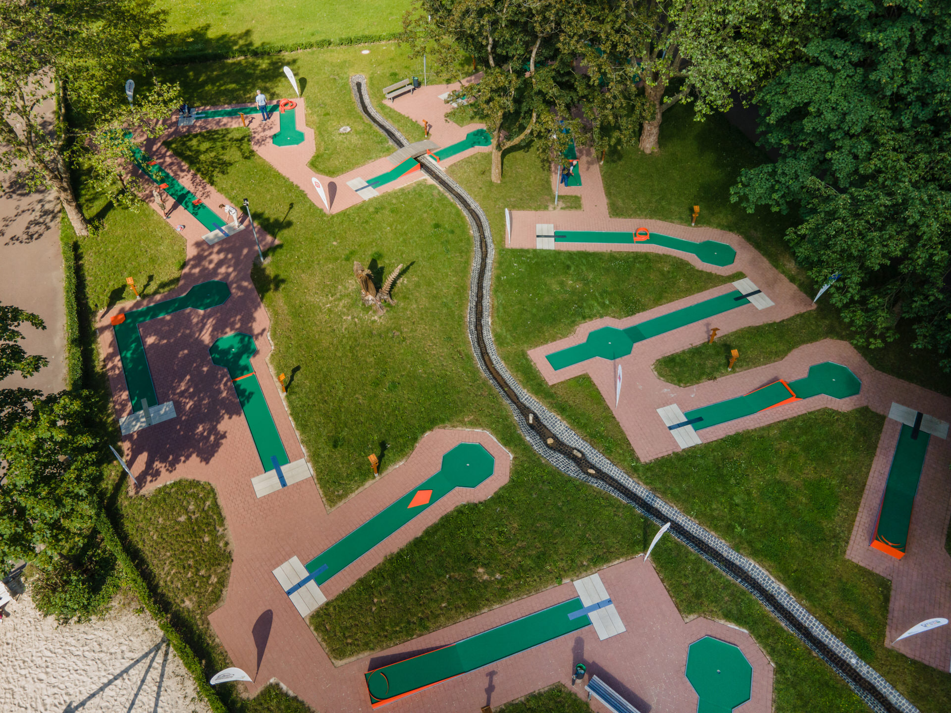 OderMinigolf in Bad Lauterberg im Harz ist eine familienfreundliche Minigolfanlage, die sich ideal für einen entspannten Tag im Kurpark eignet. Mit 18 Turnierbahnen, einem angrenzenden Spielplatz und einem einladenden Kiosk bietet der Ort zahlreiche Möglichkeiten für Spaß und Erholung. Die gepflegte Anlage ist perfekt für Familien, und die Preise sind fair. Besucher können bei einer Tasse Kaffee entspannen, während die Kinder spielen. Es gibt jedoch gelegentlich Herausforderungen beim Service, insbesondere in Bezug auf die Essensbestellungen.