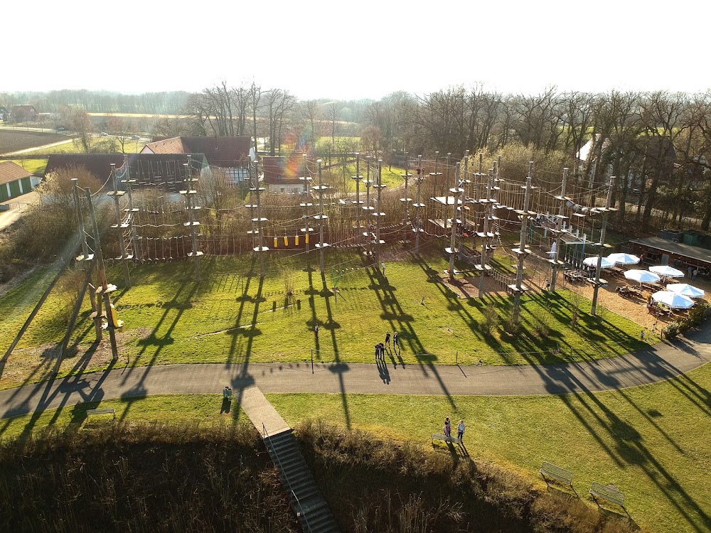 Bad Oeynhausen - Teammotion ist ein kinderfreundlicher Kletterpark im Aqua Magica Park, der mit über 85 Kletterelementen auf einer Strecke von 800 Metern begeistert. Hier finden Kletterbegeisterte verschiedene Schwierigkeitsstufen, die sowohl für Anfänger als auch für Fortgeschrittene geeignet sind. Die Sicherheit wird großgeschrieben, und die Einweisung ist kompetent und informativ. Für eine kleine Stärkung sorgt das Café mit Snacks und einem Biergarten. Ein ideales Ziel für einen aktiven Familienausflug!