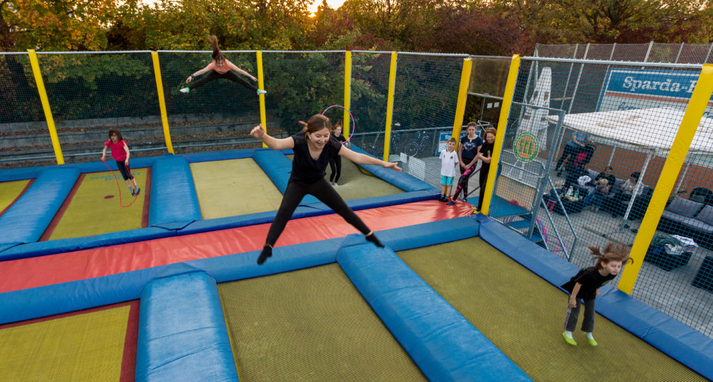 Die Trampolinanlage in Berlin ist ein kinderfreundlicher Ort, der Spaß und Bewegung für die ganze Familie bietet. Mit einer Bewertung von 4.1/5 ist es ein beliebtes Ziel für Kinder, die das Springen auf Trampolinen lieben. Neben den Trampolinen gibt es einen Außen-Spielplatz mit kleinen Hügeln, ideal zum Fahren mit Scootern, Skateboards oder Rollschuhen. Sportbegeisterte können auch einen Skatepool, Beachvolleyball- und Basketballanlagen nutzen. Die Anlage bietet viel Platz für Aktivitäten, benötigt jedoch mehr Pflege und Aufmerksamkeit.