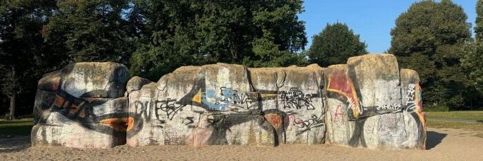 Der Kletterfelsen im Volkspark Friedrichshain ist ein beliebter Ort für Kinder und Familien, der mit einer Höhe von ca. 2,5 m und verschiedenen Schwierigkeitsgraden zum Bouldern einlädt. Die lebendige Atmosphäre und das Lachen der Kinder schaffen eine positive Stimmung. Trotz der bunten Graffiti kann der Felsen rutschig sein, und bei Regen sollte man besser fernbleiben. Besonders an warmen Tagen ist der Felsen oft überlaufen, was die Sauberkeit beeinträchtigen kann. Dennoch ist es ein großartiger Ort für aktive Outdoor-Erlebnisse mitten in Berlin.