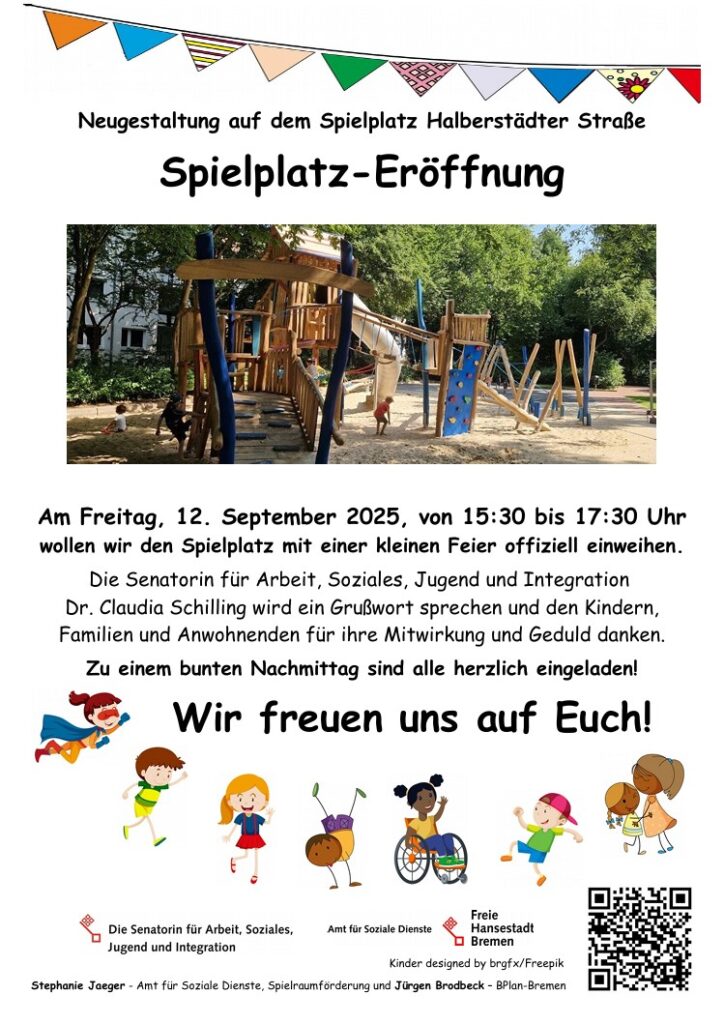Der Halberstädter Spielplatz in Bremen ist ein neu gestalteter, kinderfreundlicher Ort, der 2025 eröffnet wurde. Mit einer Bewertung von 4.5/5 bietet er eine Vielzahl von Spielgeräten für Kinder jeden Alters, darunter Klettergerüste und eine große Wippe. Besonders hervorzuheben ist das im Boden eingelassene Trampolin, das auch für Rollstuhlfahrer zugänglich ist. Der Spielplatz ist ideal für Kleinkinder bis 5 Jahre, jedoch könnte die Abschaffung der Fußballfläche für ältere Kinder ein Nachteil sein.