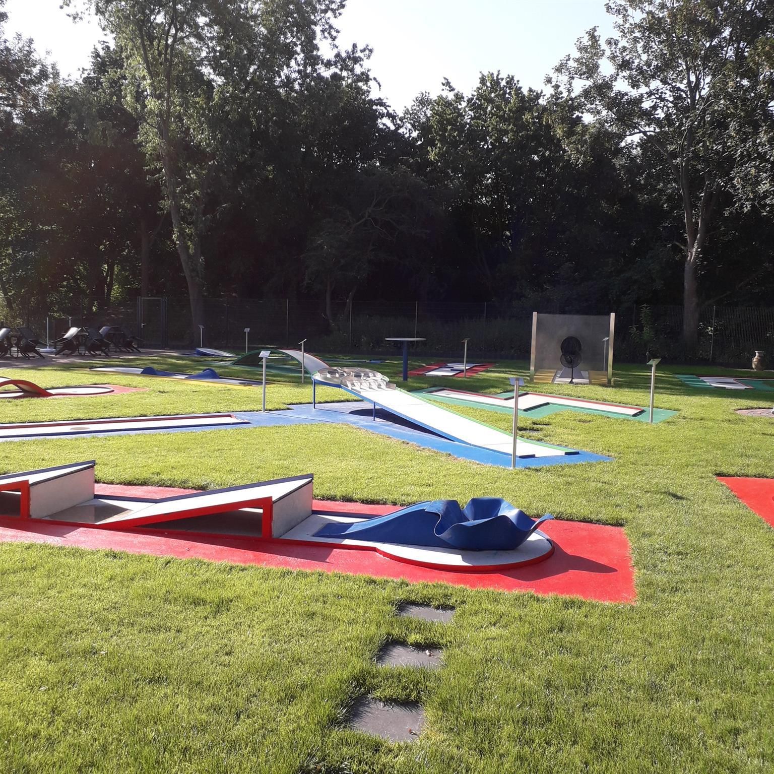 Minigolf Düren ist ein kinderfreundlicher Minigolfplatz in Düren, der Spaß für die ganze Familie bietet. Mit 18 Bahnen und einem Café vor Ort können Besucher eine unterhaltsame Zeit verbringen. Die Anlage ist sauber und das Personal freundlich, was zu einem angenehmen Erlebnis beiträgt. Die Preise sind mit 8 Euro für eine Runde angemessen, jedoch dürfen keine eigenen Speisen und Getränke mitgebracht werden. Einige Bewertungen weisen auf unebene Bahnen hin, die das Spielerlebnis beeinträchtigen können, während andere die glatten Oberflächen und die schöne Gestaltung loben.