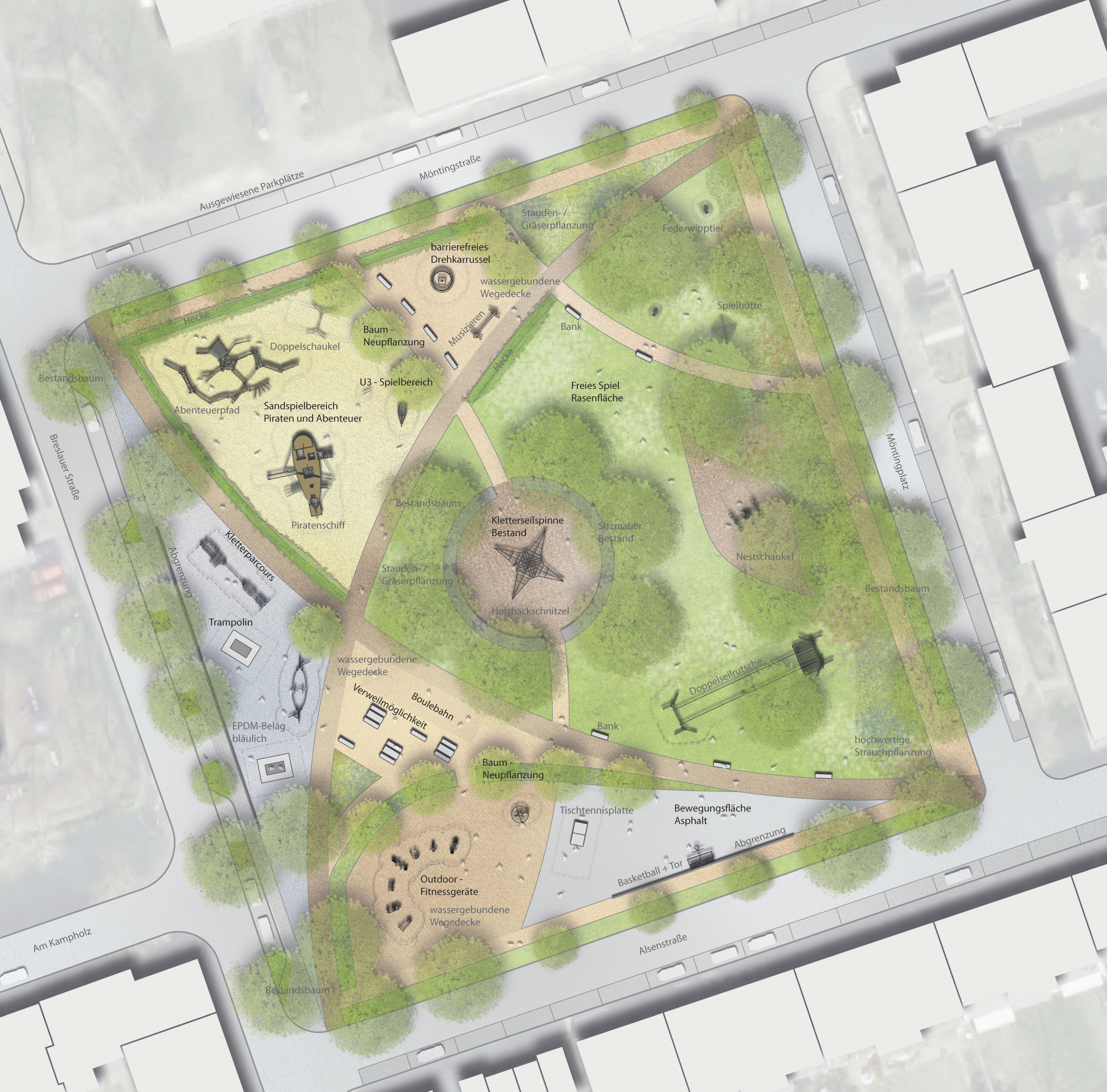 Der Möntingplatz in Gelsenkirchen ist ein kinderfreundlicher Spielplatz, der mit einer Rutsche und einem Kiosk ausgestattet ist. Er bietet eine ruhige Umgebung, in der Kinder verschiedene Spielgeräte nutzen können. Viele Besucher schätzen die Vielfalt der Spielmöglichkeiten, auch wenn einige sich eine bessere Kontrolle über den Spielplatz wünschen. Trotz kleinerer Mängel, wie Müll, ist der Möntingplatz ein beliebter Ort für Familien und Kinder in der Umgebung.