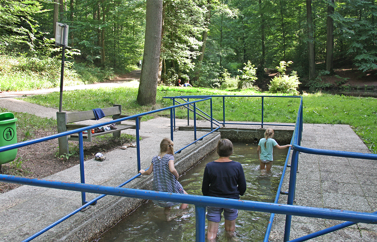 Die Wassertretstelle Holsteteich im Kasinopark in Alt-Georgsmarienhütte ist ein idealer Ort für Familien, um an heißen Sommertagen Abkühlung zu finden. Hier können Kinder und Erwachsene im kühlen Wasser treten und sich erfrischen. Die Anlage ist einfach zugänglich und bietet eine entspannte Atmosphäre, perfekt für einen Familienausflug. Es ist jedoch ratsam, Badelatschen mitzubringen, da der Boden mit spitzen Steinen versehen ist. Insgesamt ist es ein beliebter Ort, um die Natur zu genießen und sich an warmen Tagen zu erfrischen.