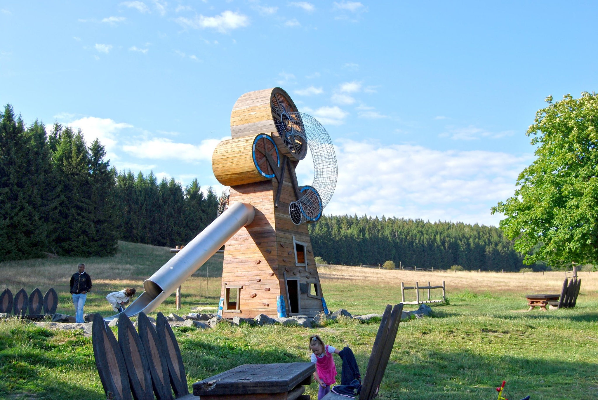 Unter den Eichen ist ein kinderfreundlicher Spielplatz in Goslar, ideal für Kinder im Alter von 3 bis 10 Jahren. Mit einer Bewertung von 4.8/5 bietet der Spielplatz eine gut gestaltete Anlage mit mehreren Zonen, darunter eine Seilrutsche und ein großer Kletterturm. In der Nähe gibt es einen kostenlosen Parkplatz, der als Ausgangspunkt für Wanderungen zur Steinberg Alm oder Granetalsperre dient. Im Winter verwandelt sich der Hang gegenüber in eine Schlittenwiese. Allerdings kann es bei schönem Wetter überfüllt sein.