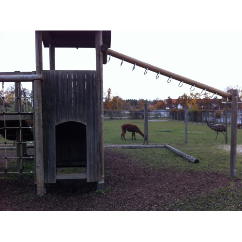 Der Spielplatz Hofgut Domäne in Hechingen ist ein kinderfreundlicher Ort, ideal für Familienausflüge. Mit einer Bewertung von 4.5/5 bietet der Spielplatz eine sichere und gepflegte Umgebung, die komplett eingezäunt ist und mit Gummimatten ausgestattet ist. Er ist exklusiv für Gäste der Restaurants im Hofgut zugänglich. Direkt vom Spielplatz aus gelangt man in einen Streichelzoo, was das Erlebnis noch spannender macht. Eltern können entspannen, während die Kinder spielen, und den Tag mit einem leckeren Essen im La Paz oder der Domäne abrunden.