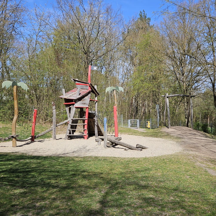 Der Spielplatz am Ortsrand bietet eine ruhige und schattige Oase für Familien. Komplett eingezäunt und gepflegt, ist er ideal für eine Pause während des Einkaufstrubels. Die Nähe zum Wald sorgt für eine angenehme Atmosphäre. Kinder können sich an verschiedenen Kletterstationen austoben und die Seilbahn nutzen. Obwohl es keine Schaukeln gibt, ist der Platz gut überschaubar und bietet genügend Raum für Spiel und Spaß. Ein perfekter Ort, um einen Nachmittag mit den Kindern zu verbringen.