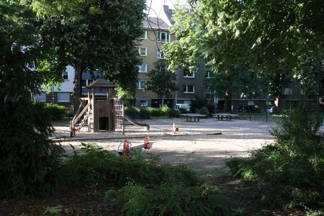 Der Spielplatz Mathiaskirchplatz in Köln ist ein kinderfreundlicher Ort mit einer Bewertung von 4.1/5. Er bietet schattige Plätze unter alten Bäumen und ist komplett umzäunt, was Sicherheit für die Kleinen gewährleistet. Die Spielgeräte umfassen eine Wippe, eine Vogelnestschaukel und ein großes Klettergerüst mit Rutsche. Der angrenzende Grünbereich lädt zum Sport und Erholen ein. Allerdings sind einige Spielgeräte in die Jahre gekommen und der Sand benötigt dringend einen Austausch. Zudem gibt es hygienische Bedenken, da der Platz von Erwachsenen und Kindern als Toilette missbraucht wird.
