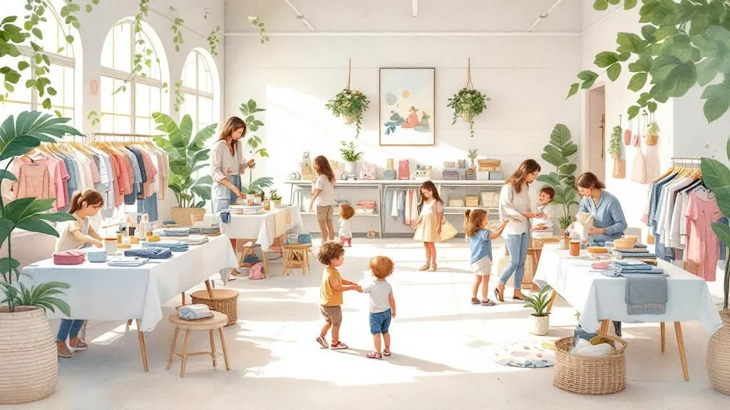 Kinderbasar in ruhiger Atmosphäre, Kleidung nach Größen sortiert, ausreichend Platz für Kinderwagen, Kaffee und Getränke/ Snacks stehen gratis zur Verfügung, Spielmöglichkeiten für die kleinen...