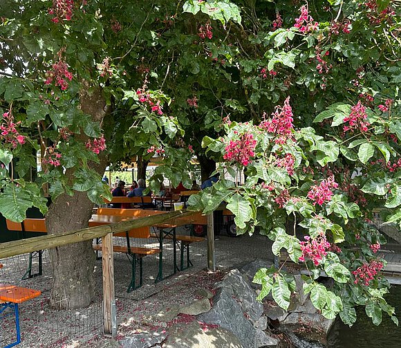 Der Biergarten Ellermühle in Landshut ist ein kinderfreundlicher Ort, der eine einladende Atmosphäre für die ganze Familie bietet. Mit einem großen Spielplatz, der Rutschen, Schaukeln, einem Bällebad, Sandkasten und einem Fußballplatz umfasst, können Kinder hier nach Herzenslust spielen. Die Speisen sind typisch bayrisch und bieten eine gute Auswahl, darunter auch Kuchen und kalte Gerichte. Die Selbstbedienung sorgt für eine entspannte Erfahrung, während die Erwachsenen die Zeit im Biergarten genießen können. In der Nähe befindet sich zudem ein kleiner Tierpark mit Ziegen, Hasen und Alpakas.