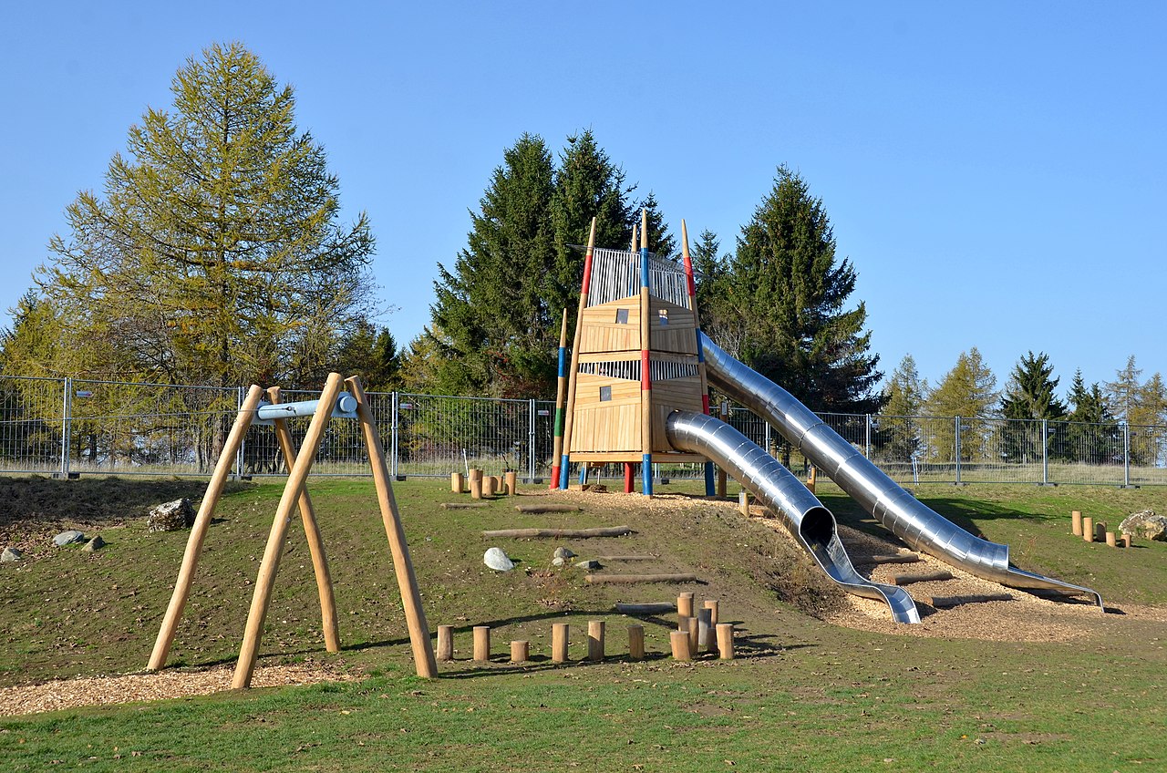 Das Sport- und Freizeitgelände Blumersberg in Meßstetten ist ein kinderfreundlicher Ort mit einer Vielzahl von Spielmöglichkeiten, darunter Wasserspiele, Rutschen und ein Kletterparcours. Das weitläufige Gelände bietet Platz zum Spielen, Toben und Grillen. Besonders für Familien mit kleinen Kindern gibt es spezielle Spielgeräte wie eine Kleinkindschaukel. Der Kiosk und die sauberen Toiletten sorgen für zusätzlichen Komfort. Allerdings gibt es wenig Schatten und der Fahrradparcours könnte für Kleinkinder gefährlich sein. Insgesamt ist es ein schöner Ort für Aktivitäten im Freien, sowohl im Sommer als auch im Winter.