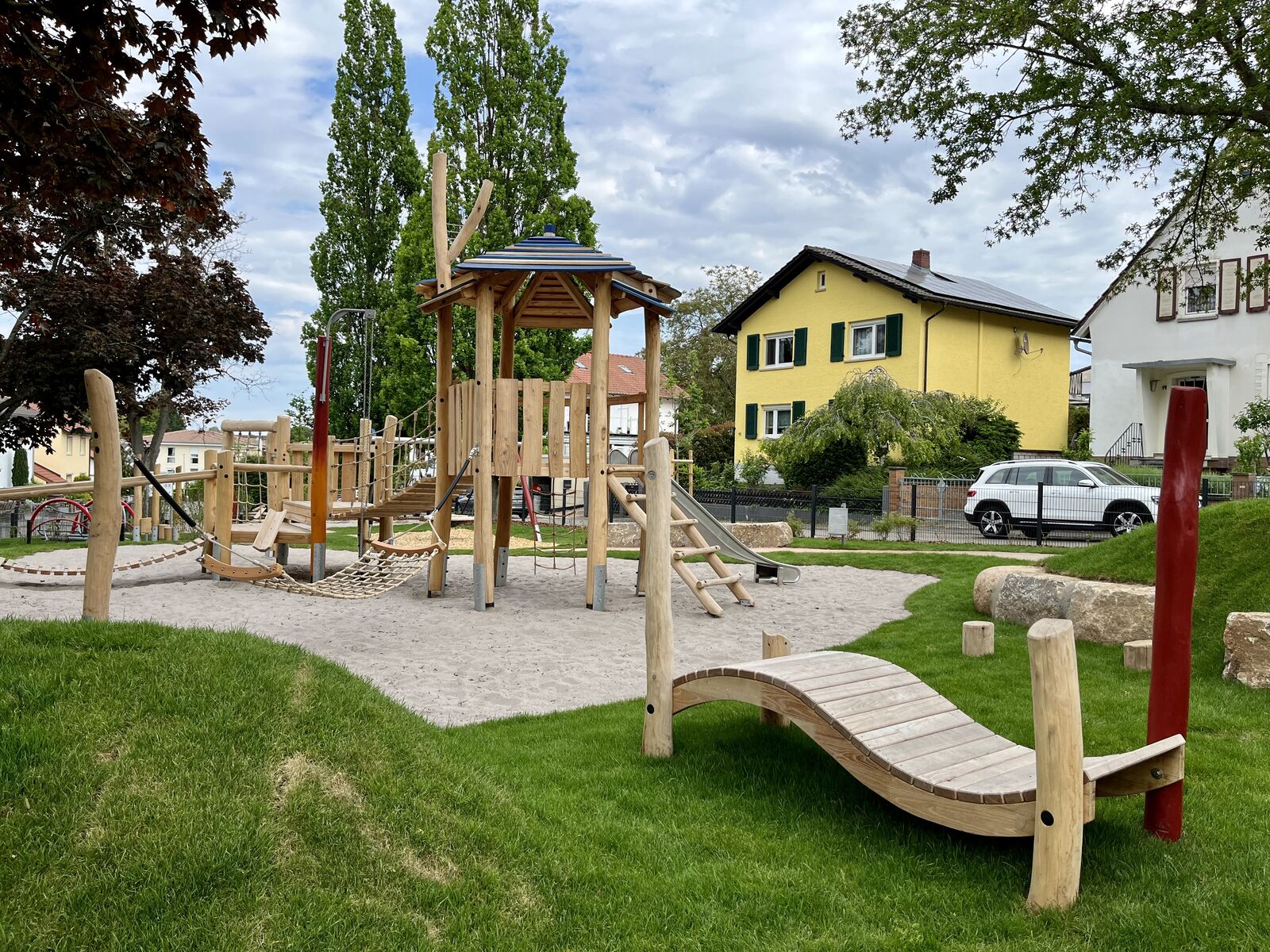 Der Spielplatz An den Ulmen in Nieder-Olm ist ein kinderfreundlicher Ort, der mit einer Bewertung von 5/5 glänzt. Er bietet zahlreiche Schattenplätze und eine Rollstuhlschaukel, die für Inklusion sorgt. Der Spielplatz ist modern und sicher gestaltet, ideal für Kinder jeden Alters, einschließlich Kleinkinder ab 7 Monaten. Die abgetrennten Sandkästen ermöglichen es den Kleinen, in Ruhe zu spielen und zu forschen. Alles ist eingezäunt und gut einsehbar, was für zusätzliche Sicherheit sorgt. Die gepflegte Anlage ist besonders im Sommer einladend.