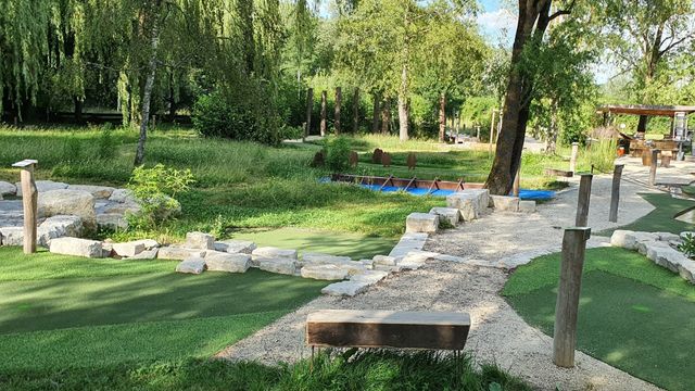 Die Golferei in Nürtingen bietet ein spannendes Adventure Golf-Erlebnis für die ganze Familie. Mit 19 kreativ gestalteten Bahnen, die regionale Themen wie die Burg Teck und Villa Rustica aufgreifen, ist der Ort ideal für einen unterhaltsamen Nachmittag. Die Lage am Beutwangsee sorgt für eine malerische Kulisse und der Kiosk am See lädt zu einer gemütlichen Pause ein. Die Bahnen sind abwechslungsreich und sowohl für Kinder als auch für Erwachsene geeignet. Allerdings gibt es Berichte über mangelnde Pflege der Anlage, was die Erfahrung beeinträchtigen kann.