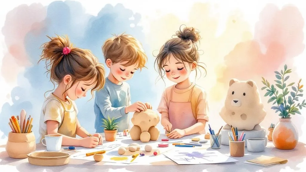 „Wir formen und gestalten was Eigenes“ Jedes Kind macht eine eigene Skulptur oder eine Plastik. Nach dem Zeichnen und Entwerfen eines Entwurfes wird aus Eierkartons, Stöcken, Pappe...