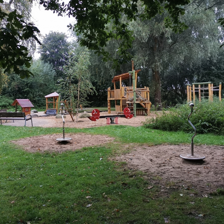 Der Spielplatz Hundsmühler Höhe bietet eine Vielzahl an Aktivitäten für Kinder jeden Alters. Mit schattigen Plätzen und einem Trampolin ist er ideal für heiße Tage. Die hohen Reckstangen, Hartgummiplatten und Monkeybars sorgen für spannende Herausforderungen. Eine Finnenbahn bietet die Möglichkeit, sich auszupowern, während verschiedene Balancebalken das Gleichgewicht trainieren. Besonders durchdacht sind die Spielmöglichkeiten für kleinere Kinder, sodass der Platz für alle Altersgruppen geeignet ist. Ein beliebter Treffpunkt in Oldenburg, wo immer etwas los ist.