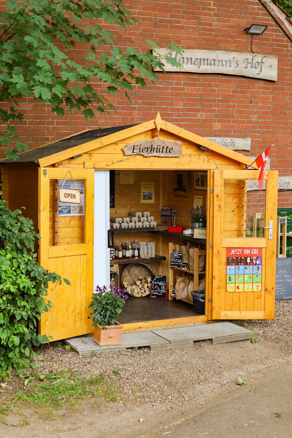 Hanemann's Hof ist ein kinderfreundlicher Ort in Porta Westfalica, der sich perfekt für Familienausflüge eignet. Der Hofladen bietet eine breite Auswahl an regionalen Lebensmitteln, darunter frische Eier, leckere Bratwürste, Gemüse und hausgemachte Marmelade. Kinder können die Hühner im Hühnermobil beobachten und sich an der freundlichen Atmosphäre erfreuen. Die netten Besitzer sorgen für eine persönliche Beratung und ein angenehmes Einkaufserlebnis. Ein Besuch lohnt sich nicht nur für die Produkte, sondern auch für die Möglichkeit, die Natur hautnah zu erleben.