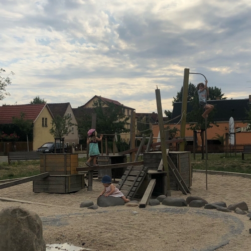 Der Spielplatz am Robert-Werner-Platz in Radebeul ist ein kleiner, kinderfreundlicher Ort, der sich besonders für Kinder ab 3 Jahren eignet. Mit Klettermöglichkeiten und einer kleinen Platschlandschaft bietet er Spaß an heißen Sommertagen. Allerdings fehlt es an Schatten, was den Aufenthalt bei hohen Temperaturen unangenehm machen kann. Die Ausstattung ist eher begrenzt, und der Untergrund aus feinem Kies könnte durch Sand ersetzt werden, um das Spielen mit Sandspielzeug zu ermöglichen.