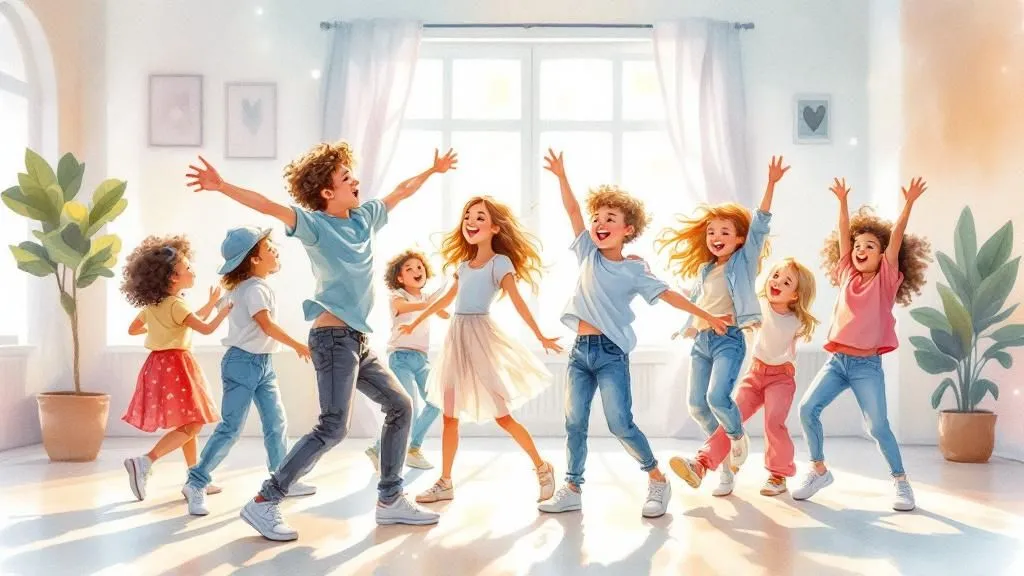 Coole Moves, mitreißende Beats und jede Menge Spaß! In diesem Kurs lernen Kinder die Grundlagen des Videoclip-Dance und tanzen zu ihren Lieblingssongs. Perfekt, um Kreativität, Rhythmusgefühl und...