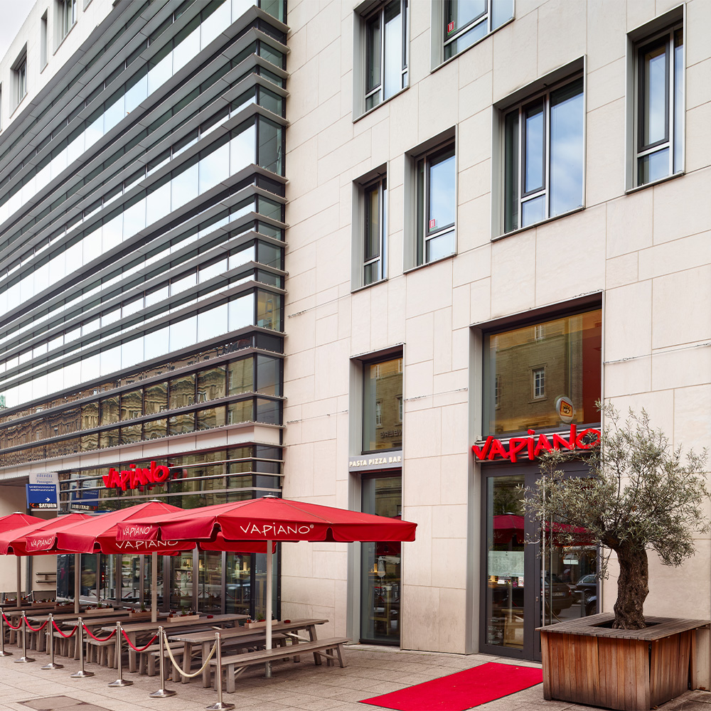VAPIANO Stuttgart Bolzstraße ist ein elegantes und sauberes Restaurant, das zentral in der Nähe des Hauptbahnhofs gelegen ist. Es bietet eine gemütliche Atmosphäre mit freundlichem und zuvorkommendem Personal. Die Speisen sind frisch zubereitet und es gibt eine gute Auswahl an glutenfreien Gerichten, darunter Pizza, Pinsa und Pasta. Das moderne Bestellsystem über QR-Code sorgt für einen unkomplizierten Ablauf. Viele Gäste schätzen die reichhaltigen und geschmackvollen Gerichte, während andere die Portionsgrößen als klein empfinden. Insgesamt ist das Restaurant ein beliebter Ort für eine entspannte Mahlzeit.