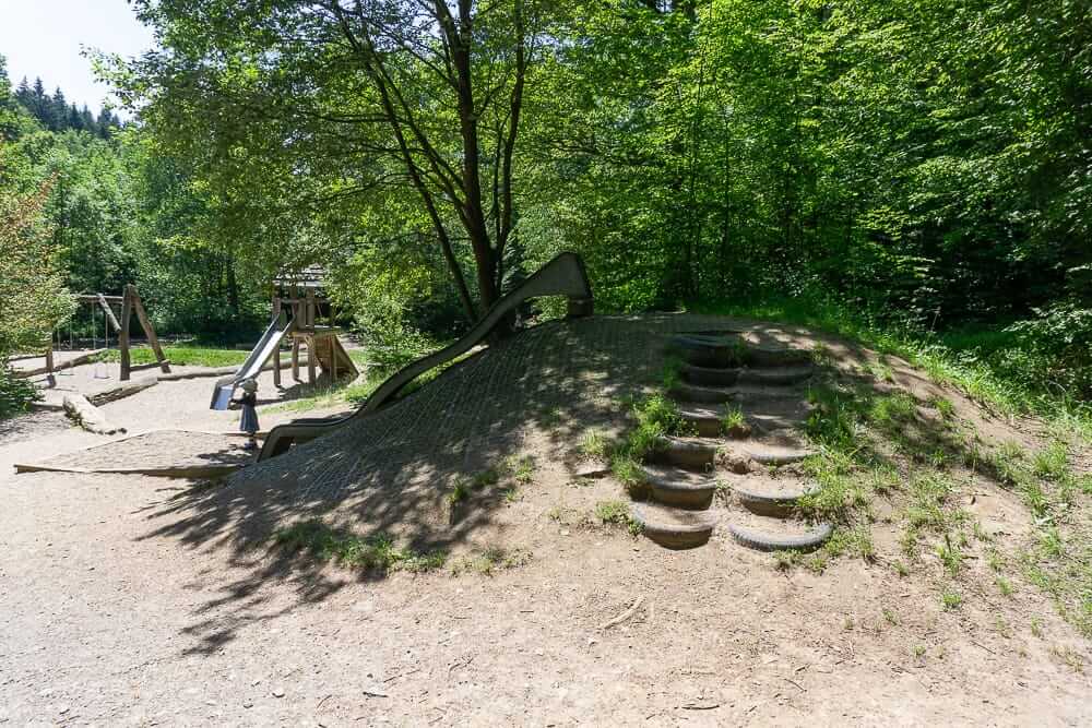 Der Waldspielplatz Wildpark Bilsteintal in Warstein ist ein kinderfreundlicher Ort, der sich ideal für Familienausflüge eignet. Umgeben von einer malerischen Landschaft und direkt am Bach gelegen, bietet der Spielplatz Schattenplätze und Wasserspiele, die für viel Spaß sorgen. Die Umgebung ist tierreich, mit Futterautomaten für die Tiere, und die Bilsteinhöhle ist ebenfalls in der Nähe. Der Zugang zum Wildpark und Spielplatz ist kostenlos, während die Höhlenbesichtigung kostenpflichtig ist. Ein perfekter Ort für einen entspannten Tag mit Kindern, auch wenn der Spielplatz etwas in die Jahre gekommen ist.