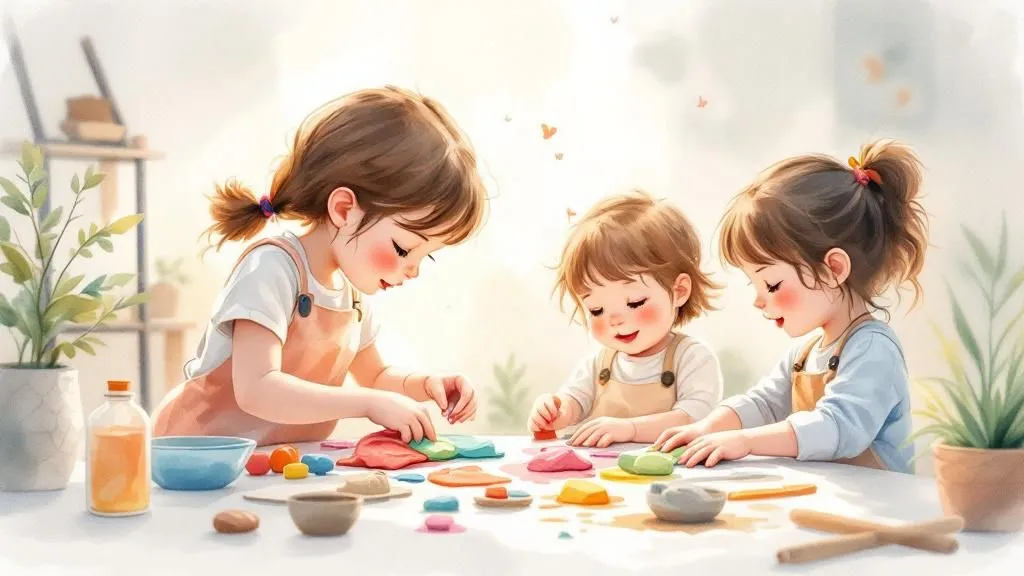 Flächen, Formen, Farben - wir lernen das Material Ton kennen. Durch einfaches Zusammensetzen von Platten gestalten wir unsere Objekte und besprechen gemeinsam die Vorgehensweise. Die Ideen der...
