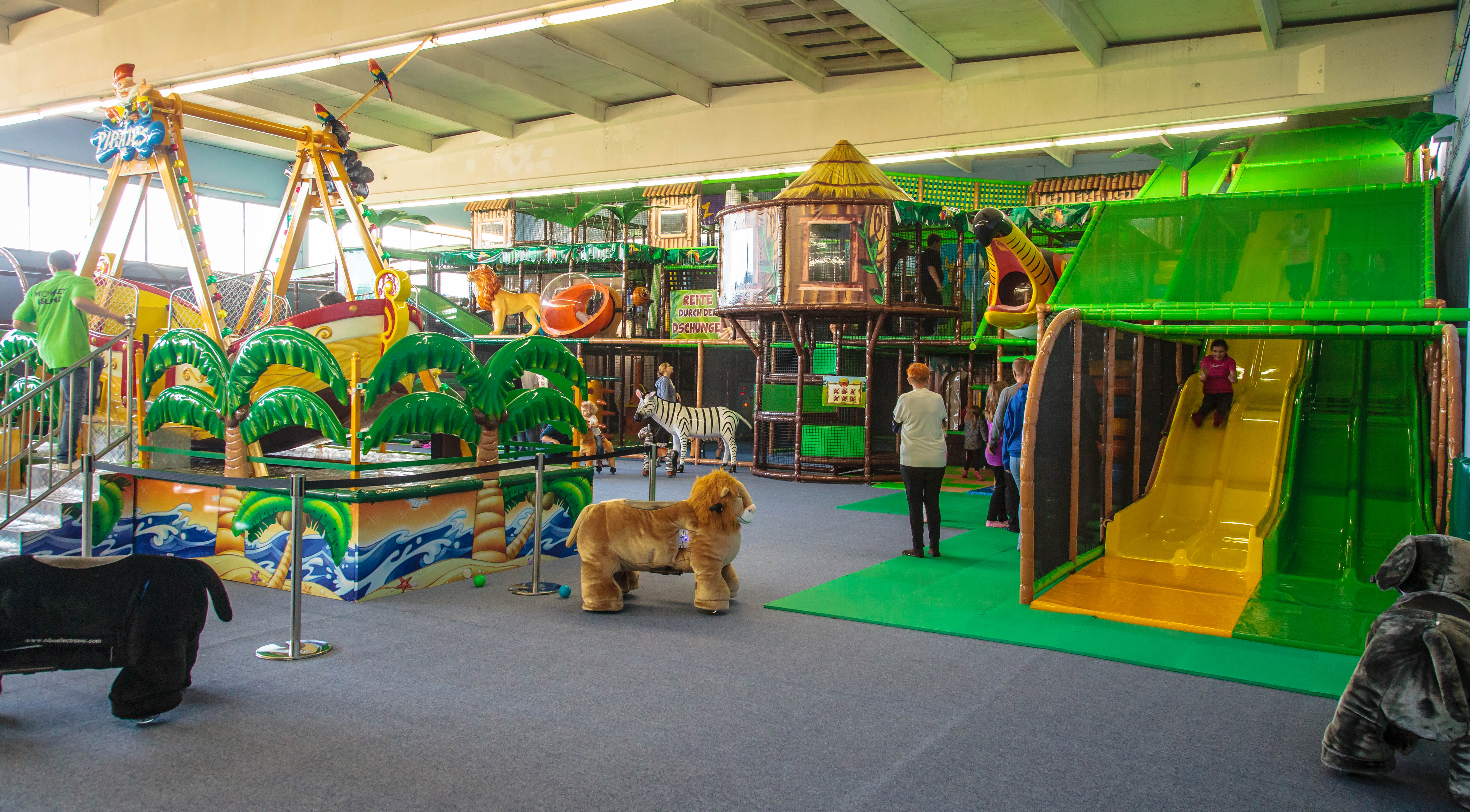 Monkey Island in Werl ist ein kinderfreundlicher Indoor-Spielplatz, der mit Trampolinen und einer neuen Hüpfburg begeistert. Die Sauberkeit ist für einen Ort, der von Kindern frequentiert wird, in Ordnung, und das Personal ist freundlich und hilfsbereit. Es gibt einen Kiosk, der Snacks und Getränke anbietet, wobei eigene Snacks erlaubt sind. Die Preise sind erschwinglich, jedoch gibt es einige Wartungsmängel bei den Spielgeräten. Insgesamt bietet Monkey Island eine gute Möglichkeit, einen Nachmittag mit der Familie zu verbringen, besonders bei schlechtem Wetter.