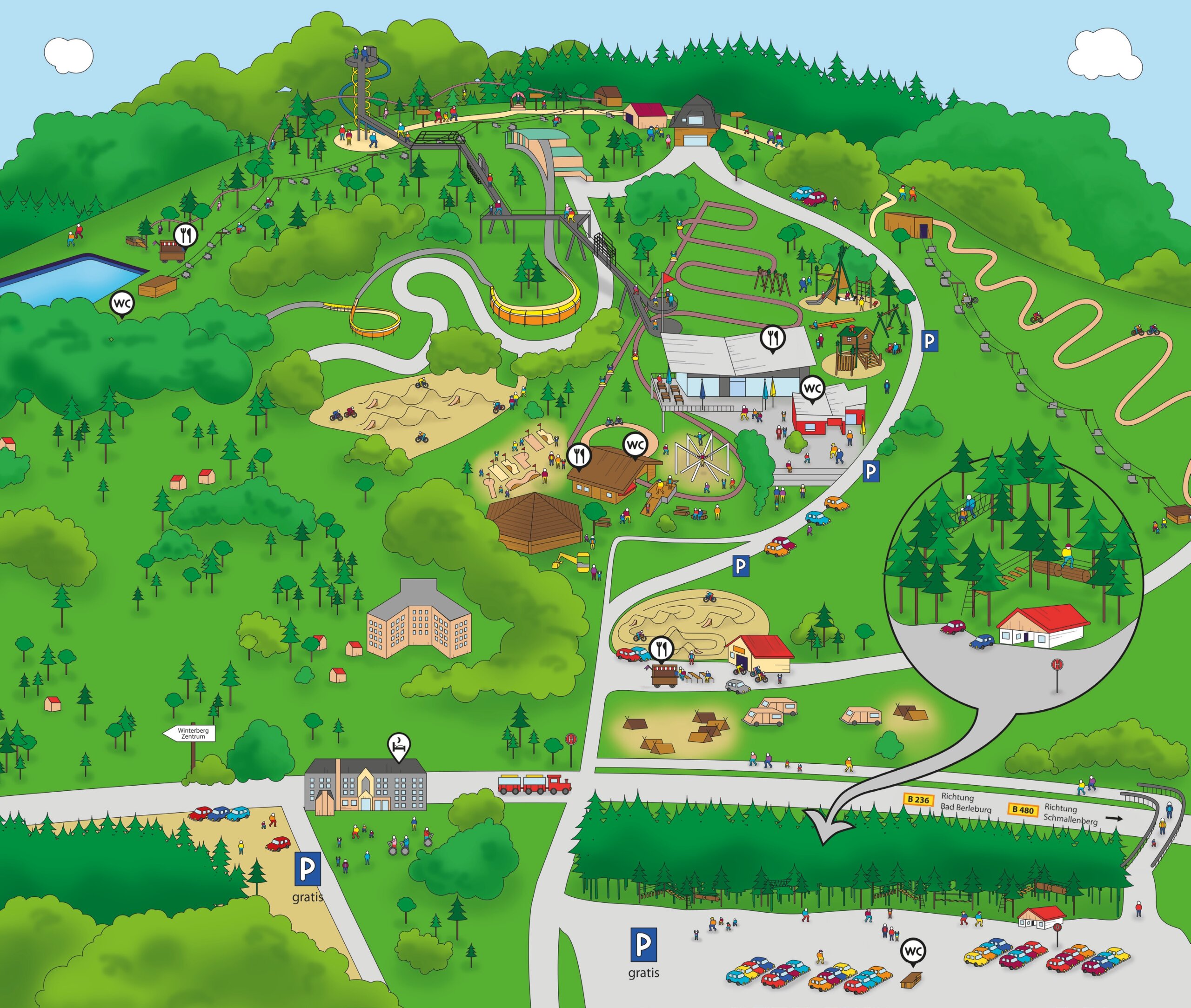 Mit Bambini Maps entdecken Sie die besten familienfreundlichen Ausflugsziele in Winterberg – mit Bewertungen, Ausstattung und Öffnungszeiten.