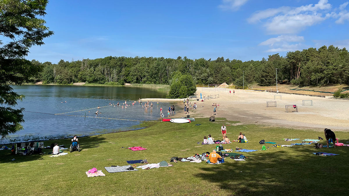 Das Strandbad Friedensteich in Wittenberge ist ein kinderfreundlicher Ort mit einem kleinen Badesee, der viel Platz und Spielmöglichkeiten bietet. Die großen Liegewiesen und der Spielplatz sind ideal für Familien. Es gibt eine Badeinsel und verschiedene Aktivitäten wie Beachvolleyball und Minigolf. Schattenplätze unter Bäumen sorgen für Erholung. Das Wasser ist klar, jedoch gibt es einige Wasserpflanzen, die beim Schwimmen stören können. Der kleine Kiosk bietet Snacks, aber die Preise sind etwas hoch. Insgesamt ist es ein schöner Ort für einen Tagesausflug im Sommer.