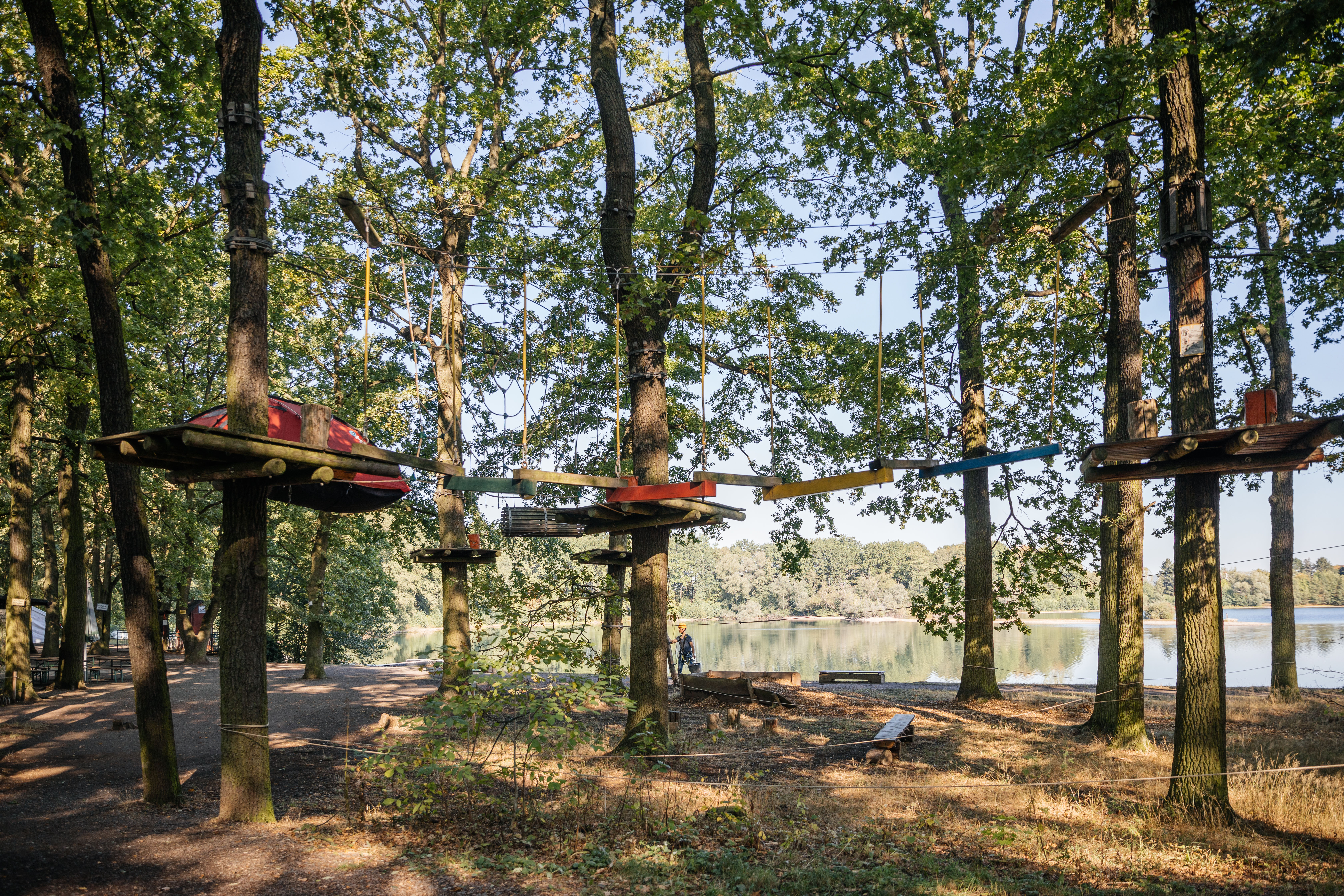 Der Kletterwald Leipzig in Naunhof bietet ein spannendes Abenteuer für Kinder und Familien. Mit zwei verschiedenen Parcours, einem kleinen für Kinder ab 6 Jahren und einem großen für ab 10 Jahren, ist für jeden etwas dabei. Die Lage am Albrechtshainer See sorgt für eine idyllische Atmosphäre, ideal für einen Familienausflug. Vorab ist eine Online-Buchung erforderlich, und das freundliche Personal steht jederzeit zur Unterstützung bereit. Nach dem Klettern können Besucher im Kiosk kleine Snacks und Getränke genießen.