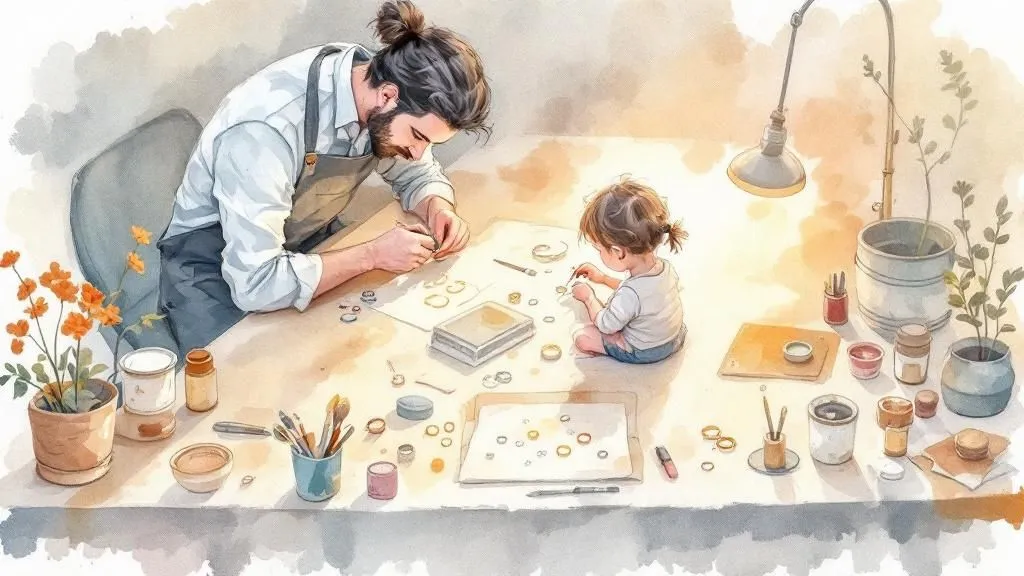Schmuckkurs für Eltern und Kinder ab 10: gemeinsam Silberringe gestalten, kreativ werden & eigene Designs umsetzen – mit echten Goldschmiedewerkzeugen! Anmeldung erforderlich.