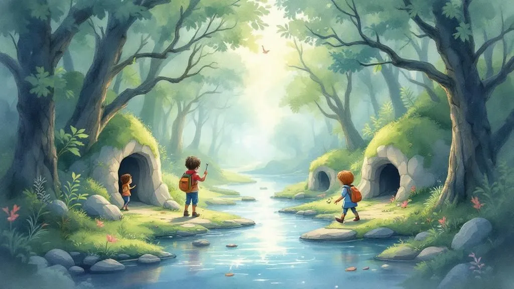 Was wohl die großen Bäume und das klingende und glucksende Bächlein zu erzählen haben? Ob Kobolde in den kleinen Höhlen wohnen? Welche Schätze verbergen sich unter dem grünen Moospolster...