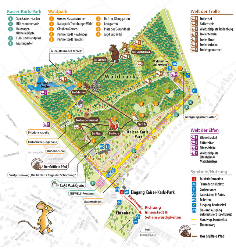 Der Grüffelo Pfad in Bad Lippspringe ist ein kinderfreundlicher Erlebnisweg innerhalb der Gartenschau, der mit kreativen Spielstationen und einem spannenden Kinderprogramm begeistert. Die Stationen sind nah beieinander und bieten viel Spaß für kleine Entdecker, darunter die beliebten Kugelbahnen aus Stein. Die idyllische Natur lädt zum Verweilen ein, jedoch könnte die Beschilderung verbessert werden, um die Orientierung zu erleichtern. Insgesamt ist der Pfad ein tolles Ausflugsziel für Familien und Grüffelo-Fans.