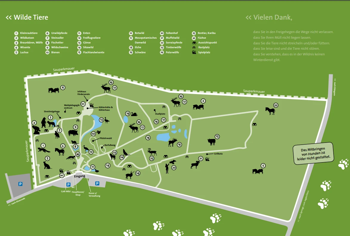 Das Wisentgehege Springe ist ein kinderfreundlicher Wildpark in Niedersachsen, der eine Vielzahl von Tieren und ein schönes Naturerlebnis bietet. Die weitläufige Anlage lädt Familien zu einem entspannten Nachmittag ein, während die Kinder auf dem neu gestalteten Spielplatz spielen können. Besondere Attraktionen sind die Wolfsfütterung und die Flugshow. Der Park ist gut organisiert, bietet viele Informationsmöglichkeiten und hat kostenlose Parkplätze. Allerdings gibt es Bedenken hinsichtlich der Größe einiger Tiergehege.