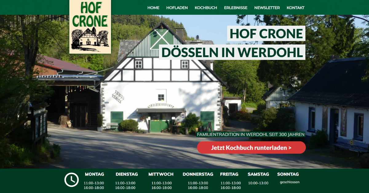 Der Hof Crone in Werdohl ist ein kinderfreundlicher Ort, der Familien eine Vielzahl von Aktivitäten bietet. Mit einem hohen Rating von 4.7/5 überzeugt der Hof durch sein Kinderprogramm und zahlreiche Spiele. Besucher können frische, regionale Produkte im Hofladen erwerben und an Veranstaltungen wie dem Apfelfest teilnehmen, wo Kinder beim Mosten und Kartoffelauflesen mitmachen können. Die Umgebung lädt zudem zu schönen Wanderungen ein, was den Hof zu einem idealen Ziel für einen entspannten Familienausflug macht.