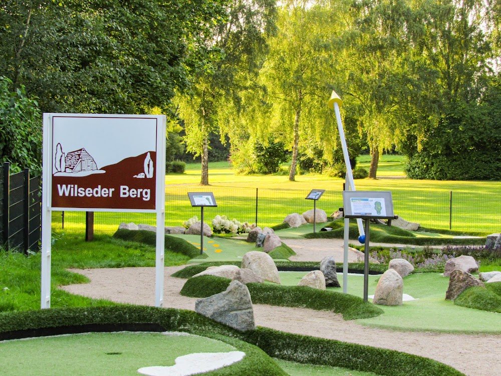 Adventure Golf Schneverdingen ist eine familienfreundliche Minigolfanlage im Walter-Peters-Park, die mit 4.8 von 5 Sternen bewertet wird. Die Anlage bietet 18 abwechslungsreiche Bahnen unterschiedlicher Schwierigkeit und ist ideal für einen unterhaltsamen Tag mit der Familie. Die gepflegte Umgebung, freundliches Personal und ein kleiner Biergarten sorgen für eine angenehme Atmosphäre. Besucher können im Kiosk Snacks, Getränke und Eis zu fairen Preisen erwerben. Die Nähe zu Toiletten und ausreichend Sitzmöglichkeiten macht den Besuch noch komfortabler.