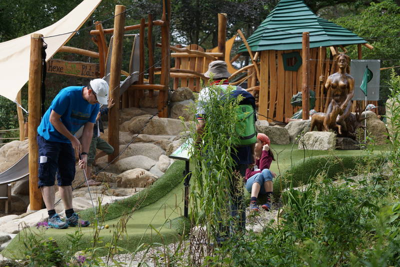 Hexengolf - Adventure-Minigolf Harz ist eine kreative und liebevoll gestaltete Minigolfanlage im Tierpark Thale. Mit zwei abwechslungsreichen Parcours und insgesamt 18 Bahnen bietet sie Spaß für die ganze Familie. Die Anlage ist gut gepflegt und bietet interessante Themen sowie informative Texte zu den einzelnen Bahnen. Ein Kiosk und ein Café sorgen für das leibliche Wohl. Ideal für einen entspannten Ausflug mit Kindern, die hier viel Freude beim Spielen haben werden.