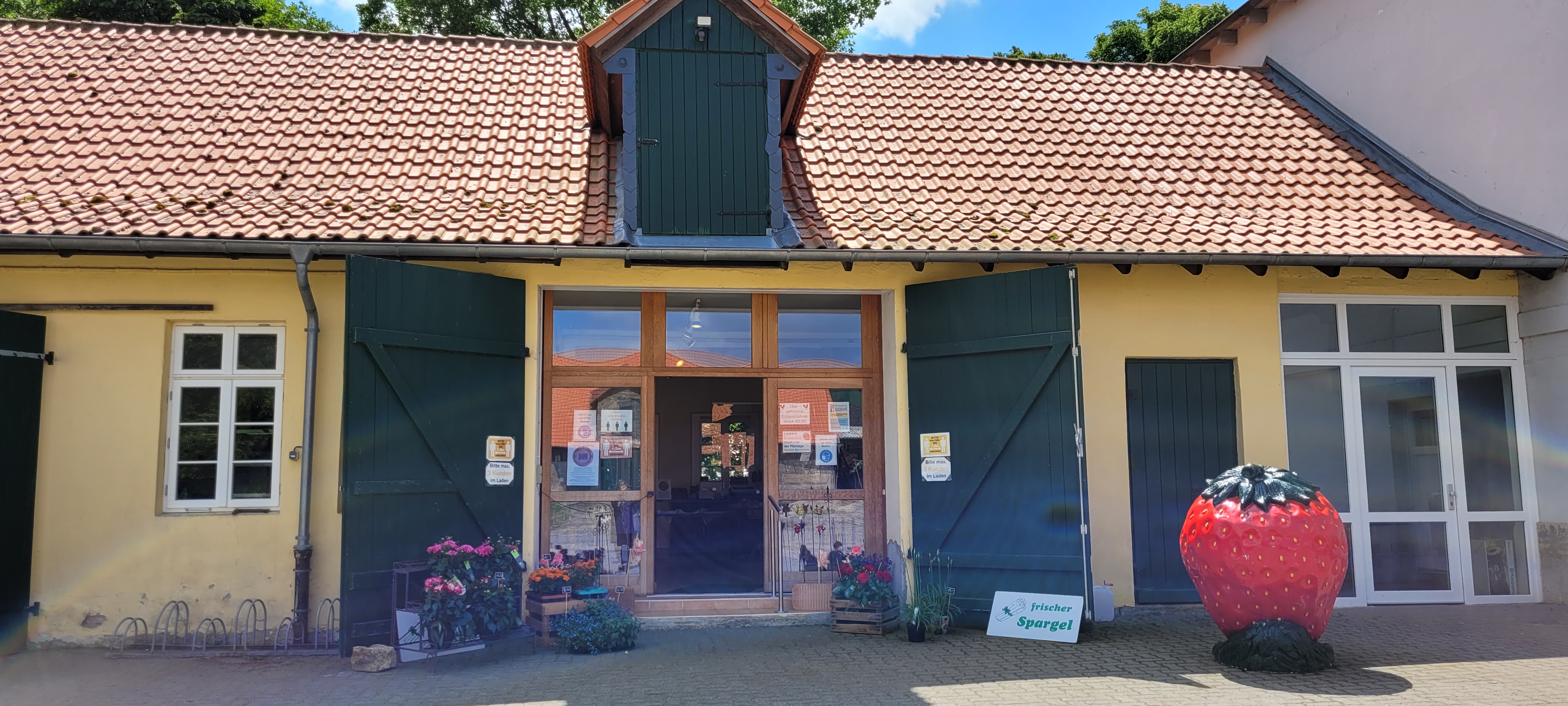 Die Domäne Salzdahlum in Wolfenbüttel ist ein kinderfreundlicher Ort mit einem schönen Spielplatz im Freien, ideal für Familienausflüge. Die Mitarbeiter sind freundlich und der Hofladen bietet eine Vielzahl von regionalen Produkten, darunter köstliche Erdbeeren und Marmelade. Es gibt auch Toiletten und einen Kiosk für Snacks. Die Atmosphäre ist einladend, auch wenn es manchmal voll sein kann. Die Qualität der Erdbeeren ist jedoch nicht immer konstant, was einige Besucher enttäuschen könnte.